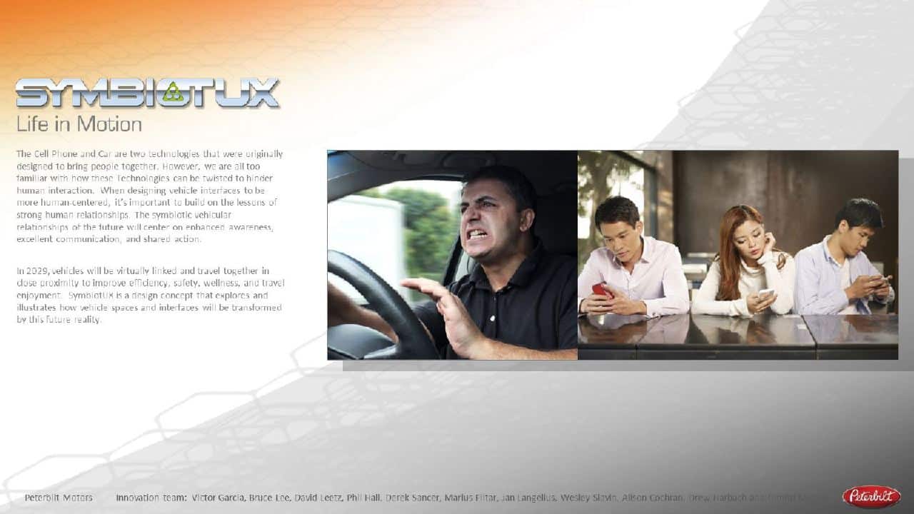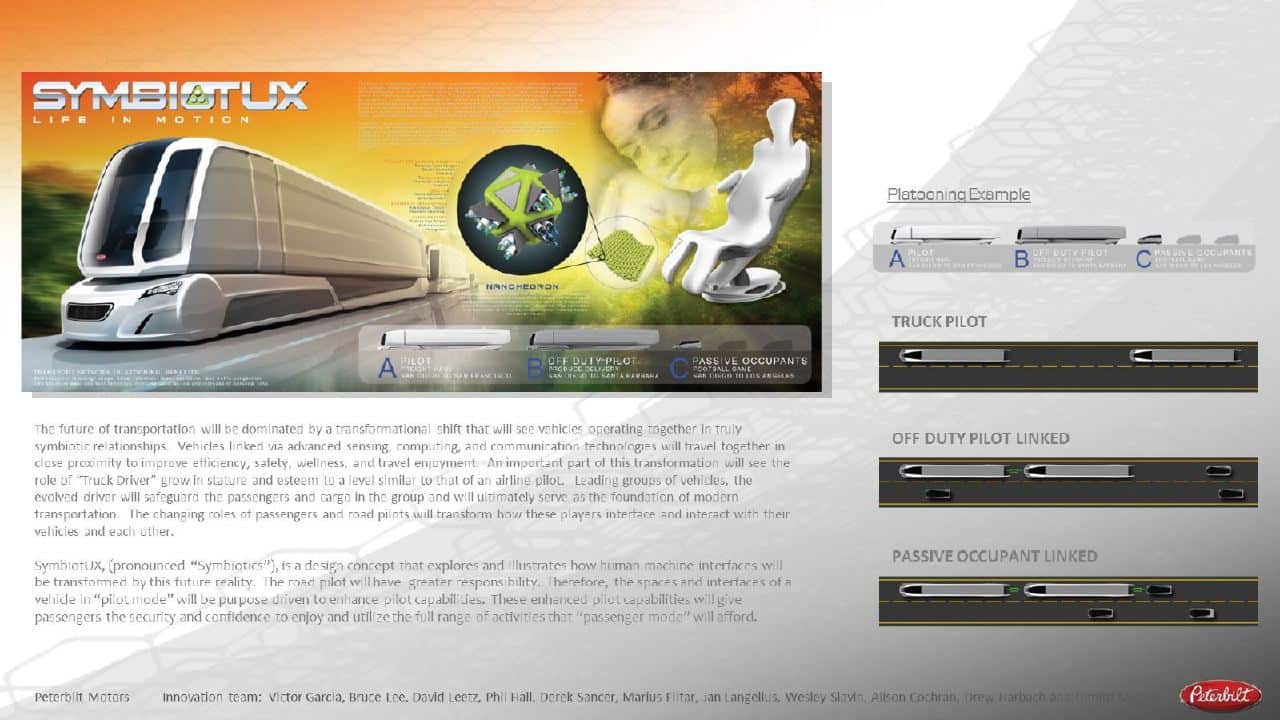 Infiniti Synaptiq concept Infiniti Design San Diego (USA) Read the article here Peterbuilt SIMBIOTUX: Life in Motion Peterbuilt Motors (USA) Read the article here .