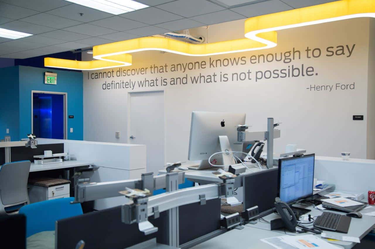 As the next phase in Ford’s Remote Repositioning mobility experiment, the Palo Alto team is now testing the ability to drive vehicles located on Georgia Institute of Technology’s campus in Atlanta from the Bay Area to prove out the new technology. A person sitting in the Palo Alto laboratory can access real-time video streamed over existing 4G/LTE technology to drive golf carts thousands of miles away. This could lead to more affordable and effective ways to manage car-sharing initiatives, or park vehicles remotely as a new form of valet parking.