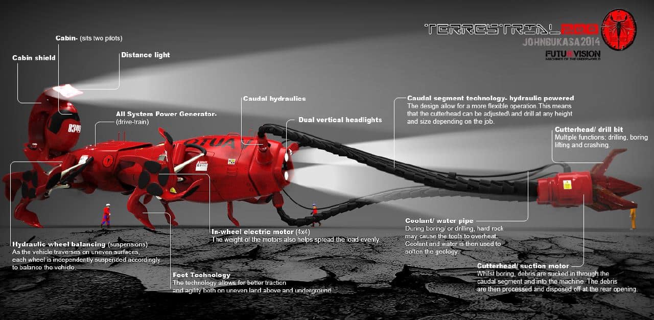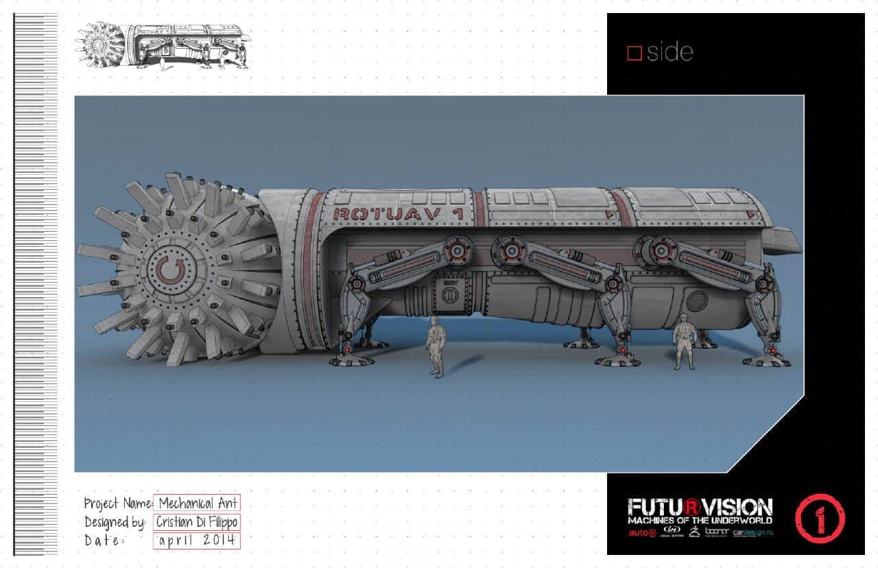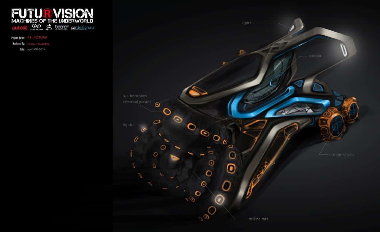And see below for a gallery of last year’s Futu®Vision Underground Design Challenge finalist entries, along with Sebastiano Di Grazia‘s winning submission, the EarthWorm ROTUAV (Rapid Operational Terraforming Underground Agitation Vehicle).