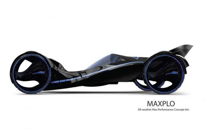 The Maxplo is an all weather, all terrain concept tire with a super-low aspect ratio. Its large intersectional tread blocks and stable shoulder blocks provide responsive handling, high-speed stability and traction on dry roads while circumferential and three dimensional grooves pump water out from beneath the tire’s footprint, ensuring minimized hydroplaning and optimal traction in the wet. In slippery on/off road conditions the tread broadens to optimize traction and braking power, while spikes are unveiled to deal with the dangers of snow and ice. The internal structure is reinforced to enhance handling, improve high-speed capability and ease travel over snow and mud terrains.