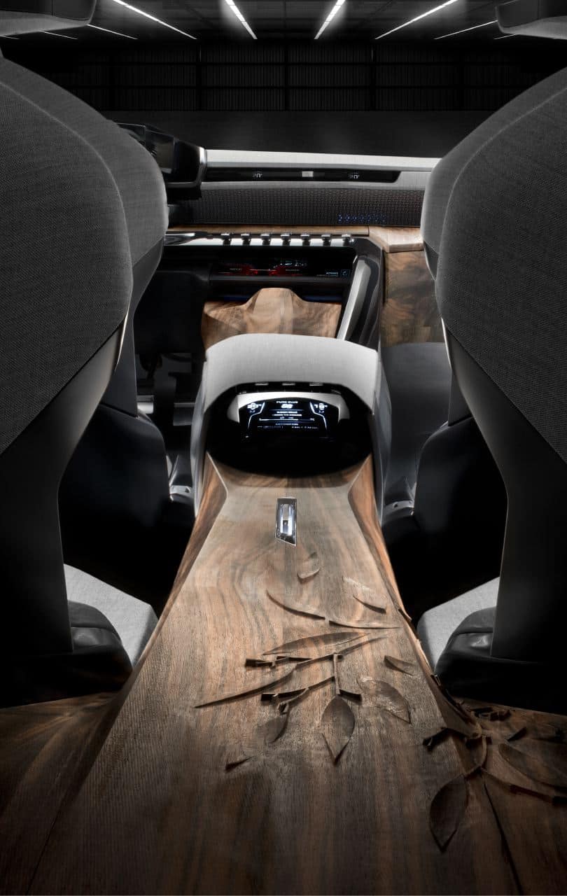 As is expected with modern day luxury cars, the sustainability story is also being told in the Peugeot Exalt concept. Locally sourced black ebony wood combines with naturally tanned leather, and basalt fibers — a natural composite — is used instead of carbon fiber.