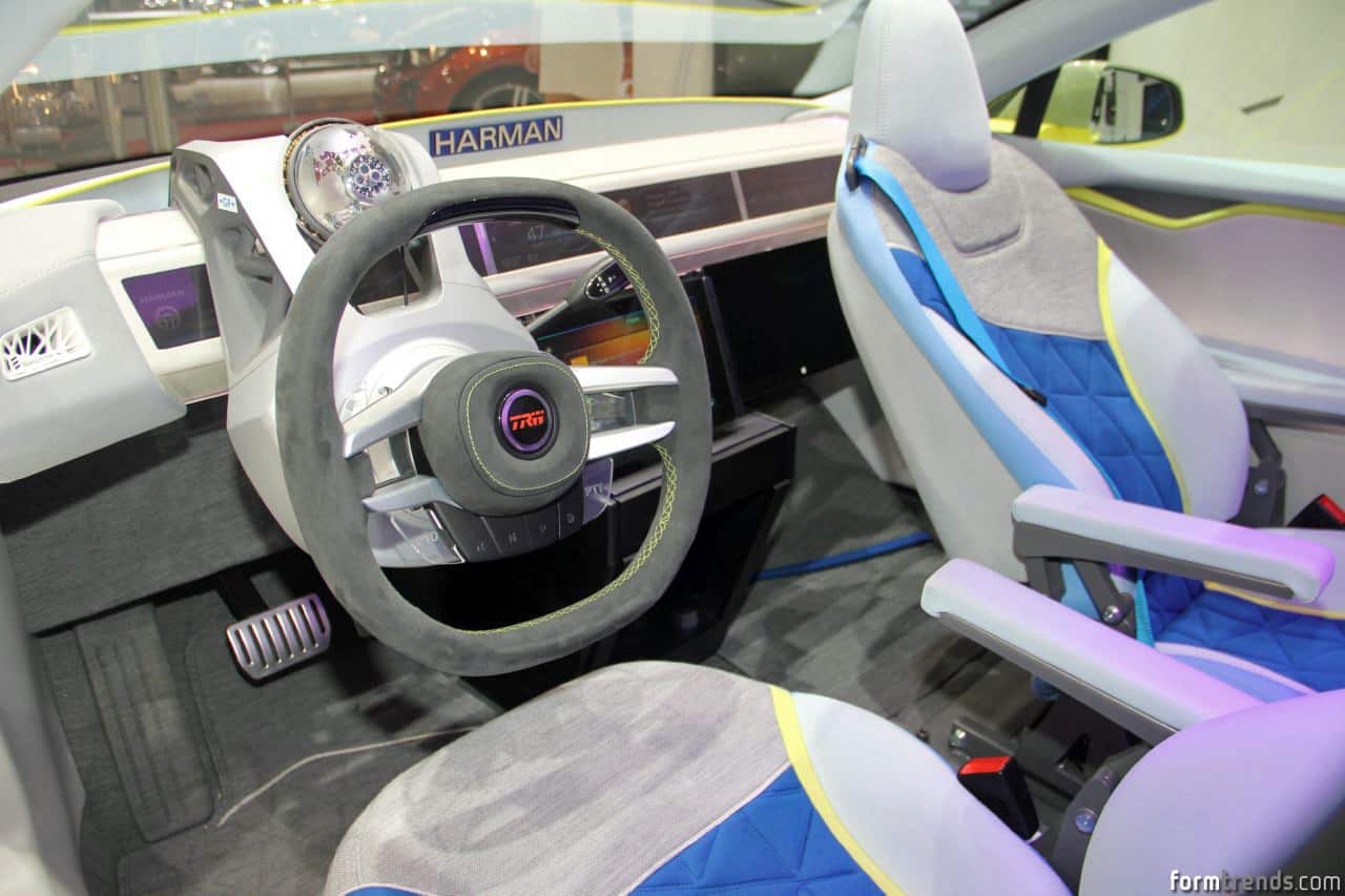 At the core of the avant-garde concept is a new, next-generation scalable infotainment platform developed by specialist Harman. Featuring a total of four screens – including a 1.2-meter-wide display strip behind the steering wheel – onto which navigation, entertainment, assistance and service functions are displayed, the screen functions can be controlled with simple gestures.