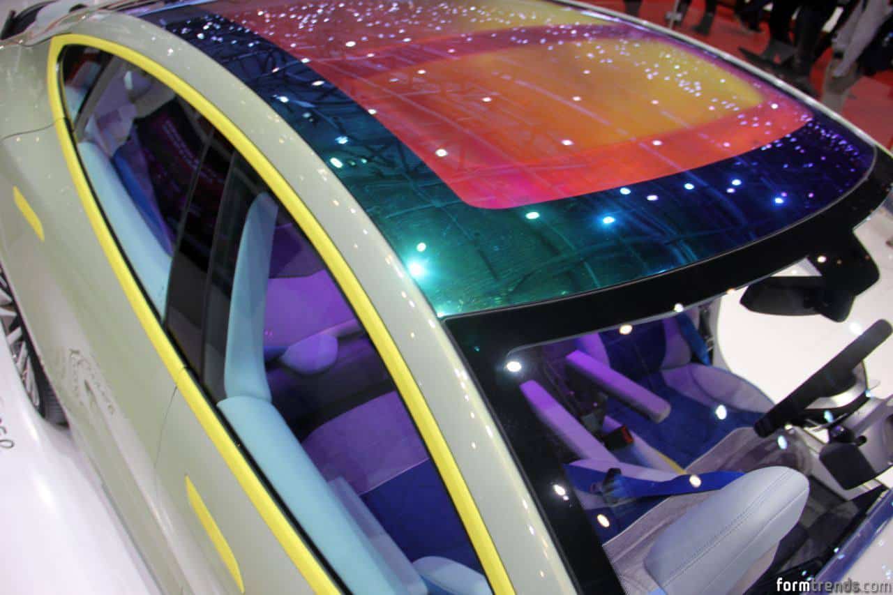Adding to the cosseting feel of the interior is a plexiglass roof complete with 358 individually controlled LEDs. These can be made to shine in an array of different colors to suit the user’s mood.