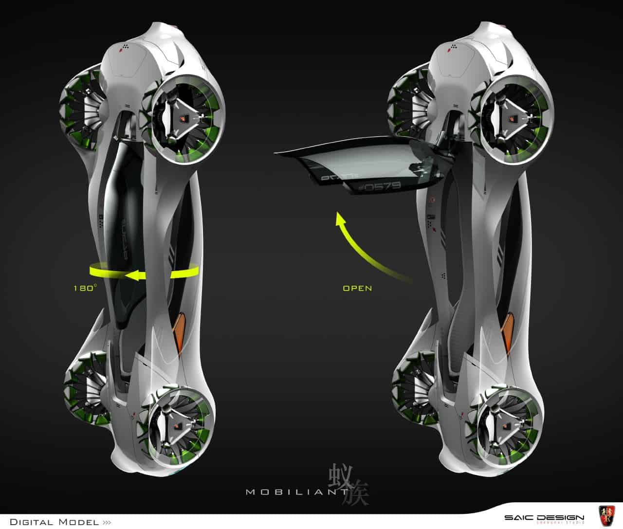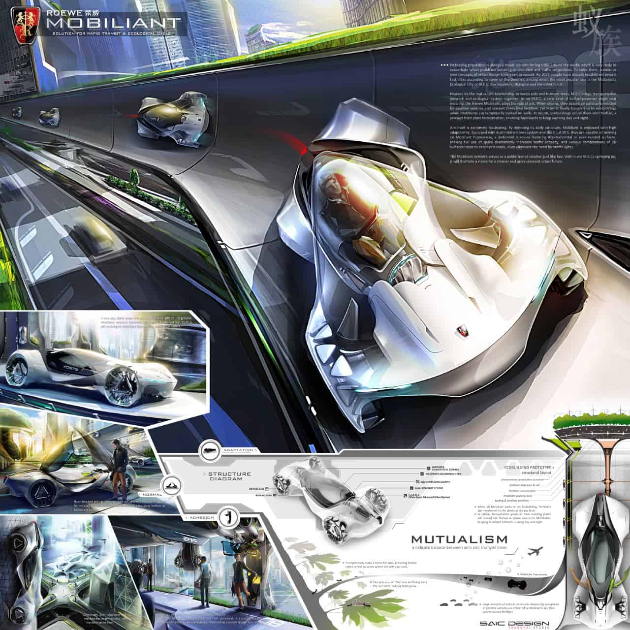 Inspired by a simple ant’s distinctive body structure and the mutually beneficial relationship between ants and trumpet trees, SAIC designed the Roewe ‘Mobiliant,’ a single-seat vehicle for urban public transit, which helps improve both transportation and operation efficiency for future urban ecological systems.
