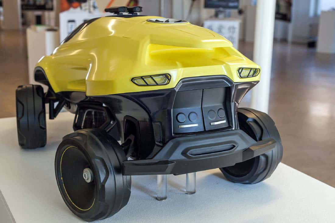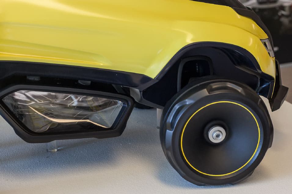 Powered by in-wheel electric motors, the concept’s interior is spacious and can accommodate tools or extra water. The trunk lid, meanwhile, has been specially constructed to facilitate the access to necessary tools.