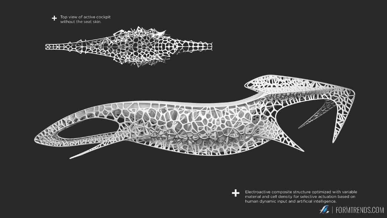 Rahmani’s mission to bridge the gap between technology and biology has been successfully applied in this project, ultimately yielding a concept for a vehicle design that uses emerging technologies like nano-scale 3D printing, artificial intelligence and electroactive materials to create a package that is closer to nature in both function and form.