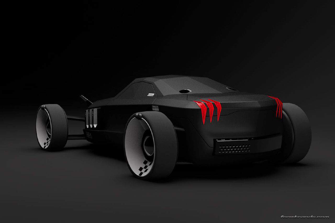 Intended primarily for the California market, the Shock Rod retains the exposed ‘wheel at each corner’ look while lowering the body closer to the ground for a more contemporary stance. The front lights are more organic in form to provide visual contrast against the hard industrial surfacing of the body, while the faceted form of the roof is removable to provide an open air driving experience when required.