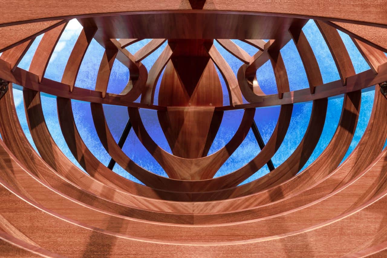 Sketches and studies lead to a giant teak sculpture resembling the skeleton of an old ship. Häberli’s mobility vessels offer enjoyment in the experience of travel. His cities are built on sea, in the skies. His is a cinematic world evoking the spirit of Gattaca, of Fifth Element.