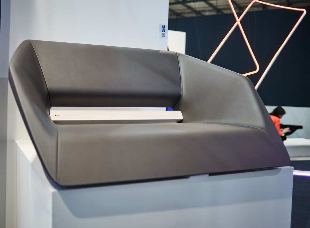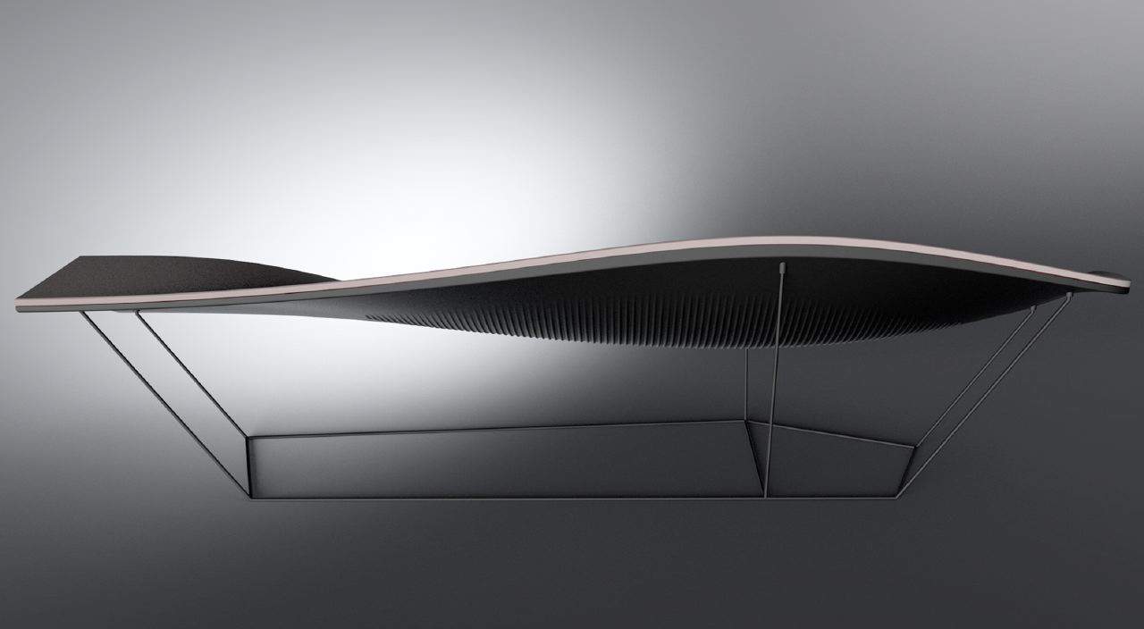 In the main Milan Fairgrounds hall, Ford unveiled a range of non-car products designed by its global team directed by Moray Callum. The boat, guitar, table football, floating lamp, wifi speaker and two interpretations for lounge areas displayed here were inspired by the interior of the new GT supercar.