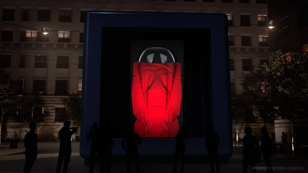 Favilla, To Every Light a Voice formed the second half of the display. Created in collaboration with Attilio Stocchi, this immersive installation unfolds inside two large boxes. The first by the Italian architect examines the science of light amid a dazzling, reflective show; the second by Ford’s in-house animation studio, offers an engaging product experience revealing the marque’s design process.