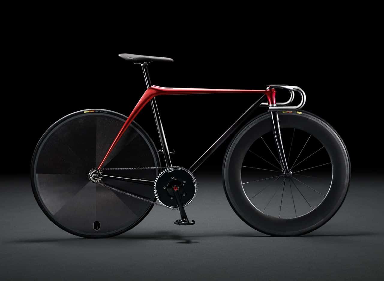 The bike frame is beaten from a steel panel at Mazda’s Californian design studio, the hand-sewn leather saddle features the same stitching as the upcoming MX-5’s upholstery, and the red accent is a nod to Kodo.