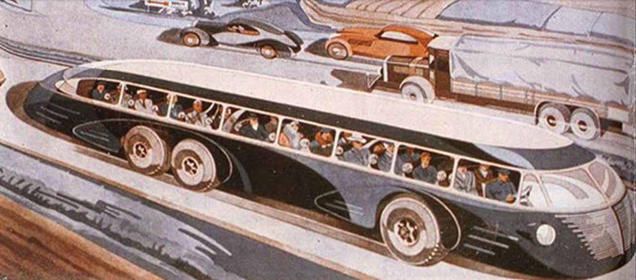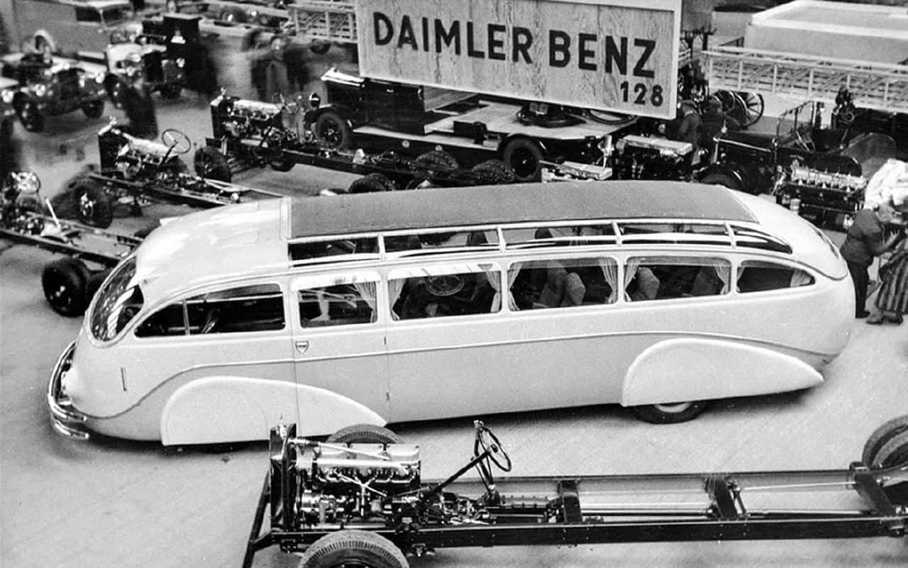 In Germany, Mercedes and Büssing were two manufactures that built dramatic looking autobahn cruising vehicles, in the UK Duple was also a trendsetter. Futurist designers in the US presented fantastic schemes for dramatic trans-continental buses most of which were never going to reach production but challenged contemporary car design.