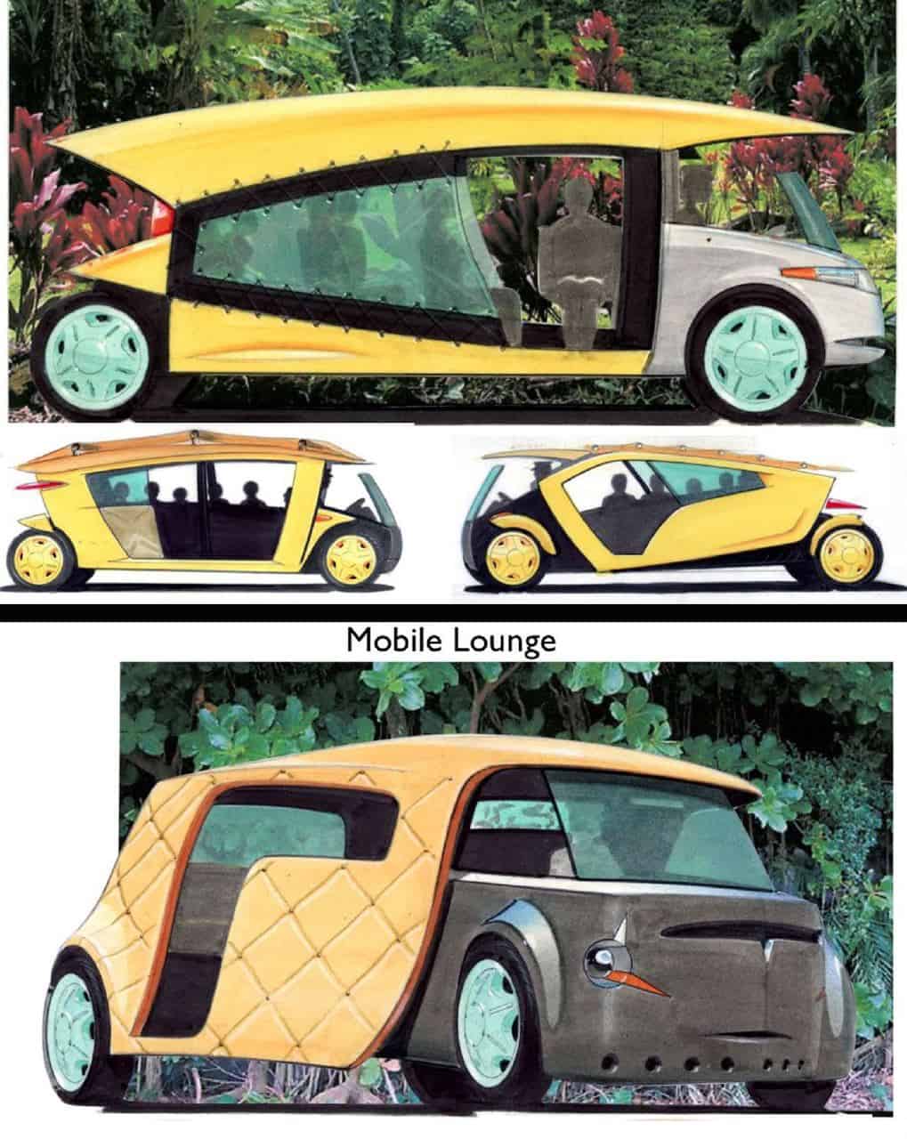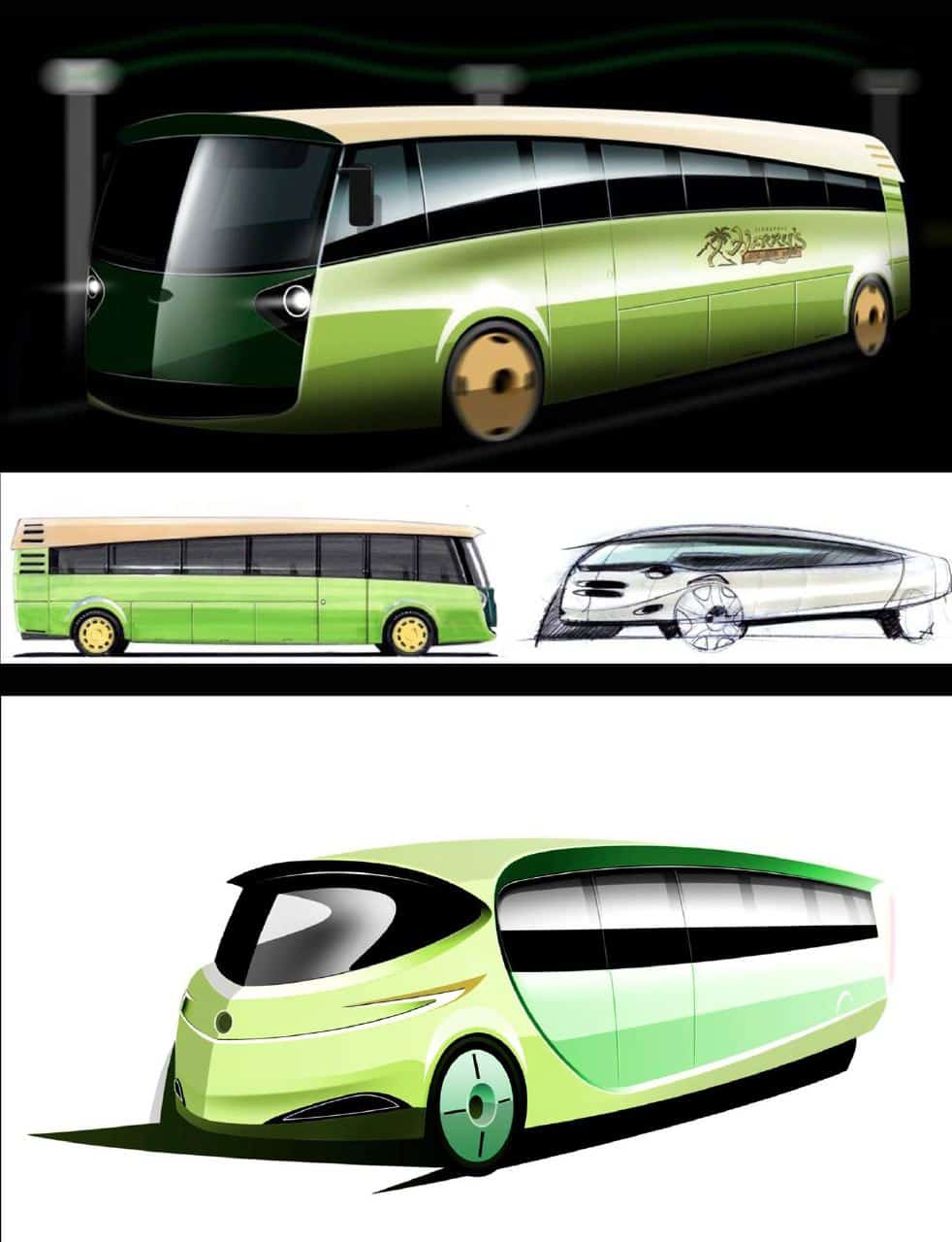 Some years ago I worked on a couple of conceptual vehicle designs with good friend Rakesh Chavda. One was for all of the transportation for a resort island near Singapore. We were able to propose all of the infrastructure as well as the vehicles, this felt like a complete design project where environment and hardware were integrated. The other was for a radically different tourist bus, a ‘Mobile Lounge’ that would immerse the passengers in the local culture and environment in a very different way from being cocooned inside a Volvo.